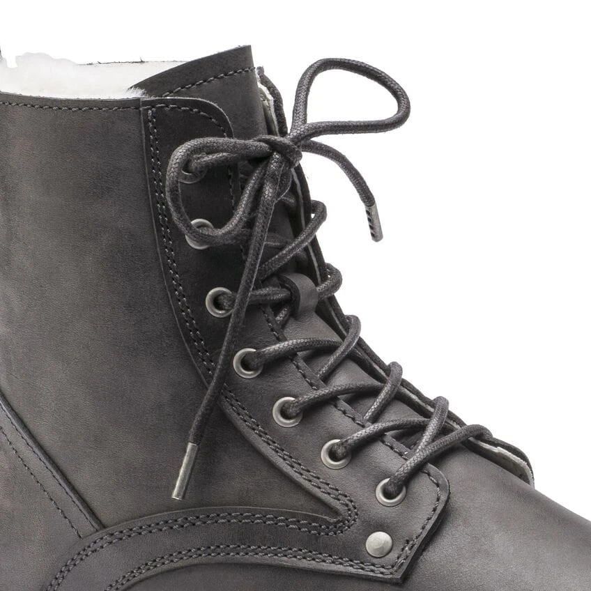 The BIRKENSTOCK Bryson is a casual lace-up boot. It boasts an understated, rustic look. The cork PU midsole makes it an instantly recognizable BIRKENSTOCK design. This winterized version is especially cozy with the upper and footbed lined in genuine shearling, to keep your feet warm. The upper is made from water repellent, oiled suede.