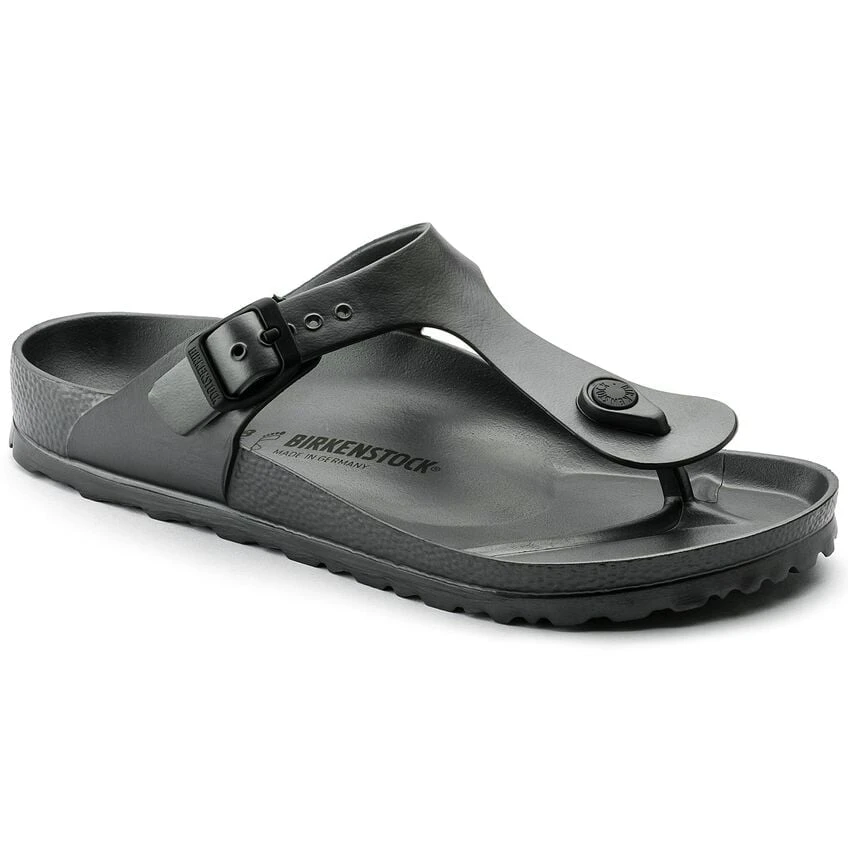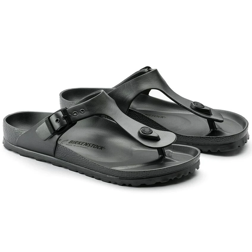 The BIRKENSTOCK Gizeh is our classic thong sandal. Modeled on the cork original, this sandal is made from ultra lightweight and highly flexible EVA. These colorful sandals are shock-absorbent, waterproof, and skin-friendly. Wear them at the beach, in the garden, or in wellness and spa areas. It’s the perfect addition to your classic BIRKENSTOCK sandals.