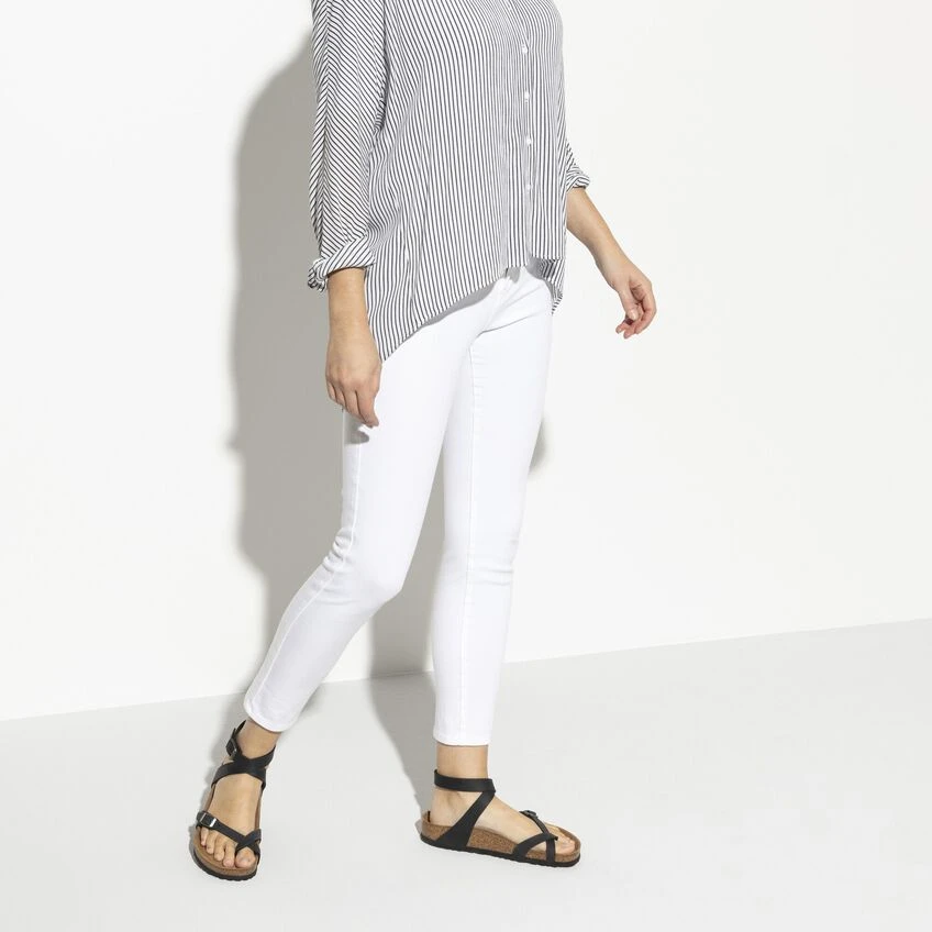 The BIRKENSTOCK Yara stands out with its curvy narrow strap that gives the sandal a feminine touch. The heelless sandal with an ankle strap combines optimum grip and comfort with a light and svelte appearance. The upper is made from extra thick, oiled nubuck leather with an open-selvage finish.